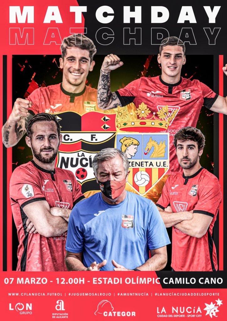 El Club de Fútbol La Nucía afrontará el próximo domingo, a partir de las 12:00, en el Olímpic Camilo Cano,