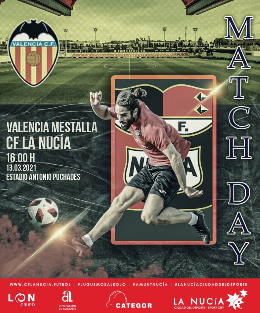 El Club de Fútbol La Nucía viajará mañana sábado a Valencia para, a partir de las 16:00, medirse al filial