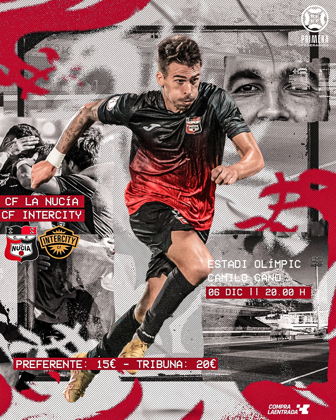 El Estadi Olímpic Camilo Cano acogerá mañana, a partir de las 20:00H, el duelo de la jornada 15 del grupo 2 de Primera Federación entre el CF La Nucía y el CF Intercity.