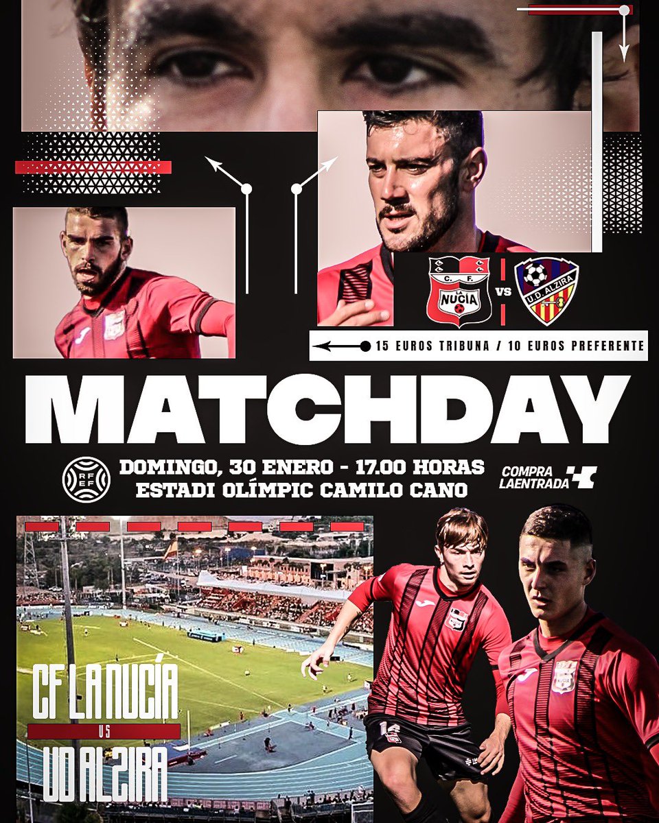 El Club de Fútbol La Nucía recibirá el próximo domingo, a partir de las 17:00, en el Estadi Olímpic Camilo Cano, a la UD Alzira, en el encuentro correspondiente a la decimonovena jornada del grupo V de 2RFEF.