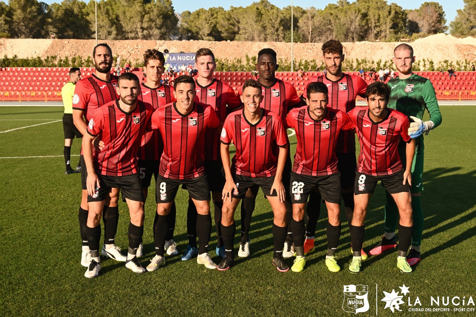CF La Nucía: Jaume Valens, Romera, Álex Salto, Adri León, Kevin Toner (Álex Alonso min 35), Dasquet (Moisés min 45), Bora (Manu Viana min 45), Javi Martín (Javi Cabezas min 62), Fer Pina, Marc Mas (Christian min 69) y Mariano Sanz.