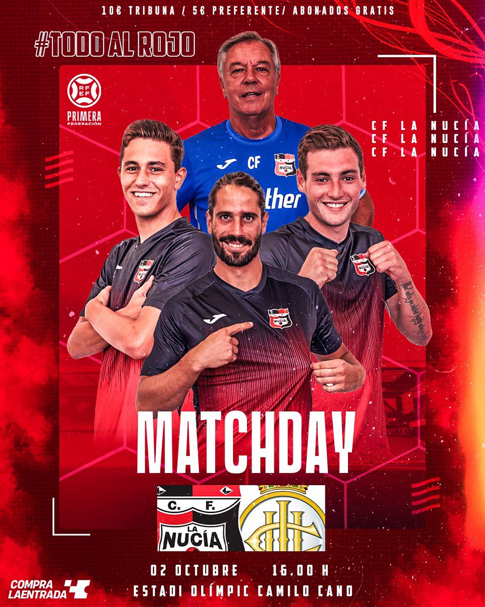 Nueva cita en el Olímpic para un CF La Nucía que quiere brindarle a su afición el primer triunfo de la temporada como local. El partido, que dará comienzo a las 16:00 del domingo, se podrá seguir a través de la plataforma InSports.