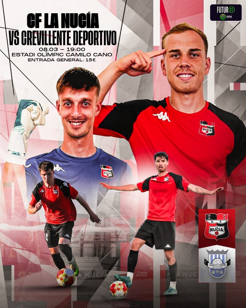 El CF La Nucía disputa este domingo a las 19:00 horas un nuevo compromiso liguero en el Estadi Olímpic Camilo Cano, donde recibirá al Crevillente Deportivo en el encuentro correspondiente al Grupo 6 de la Tercera Federación.