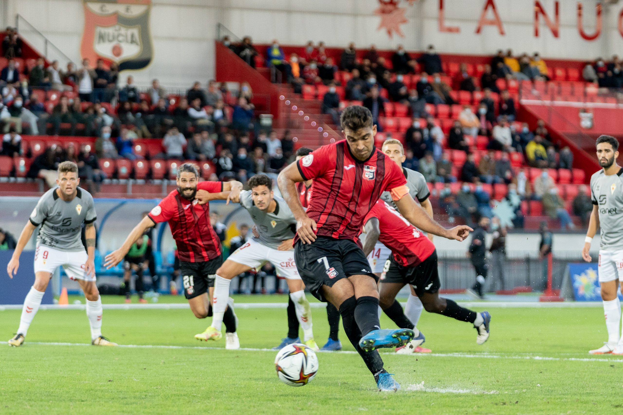 Salió La Nucía de vestuarios con Diogo sustituyendo a Moisés por lesión. Cambio que se sumaba al de Miñano por Adri León, lesionado también a la media hora de juego. Aun así, y con una línea defensiva inédita, los locales buscaron la sentencia desde el inicio del segundo tiempo. Fofo Enríquez remataba de cabeza al travesaño a los dos minutos de la reanudación, cayéndole el rechace a Thomas Dasquet que, con todo a favor, la mandaba fuera. Los pupilos de César Ferrando se encontraban cómodos en el verde del Olímpic, siendo Manu Viana el gran protagonista con sus innumerables internadas por banda izquierda. Sin embargo, la falta de acierto en los metros finales dejaba un escaso 1 a 0 con todo por decidir. Un penalti de Jaume Valens en el 81 transformado por Carrasco metía en el partido al Murcia, que se lanzó a por la victoria. A dos minutos del final del encuentro Dani García certificaba la remontada y dejaba a La Nucía sin sumar por primera vez en lo que llevamos de competición.