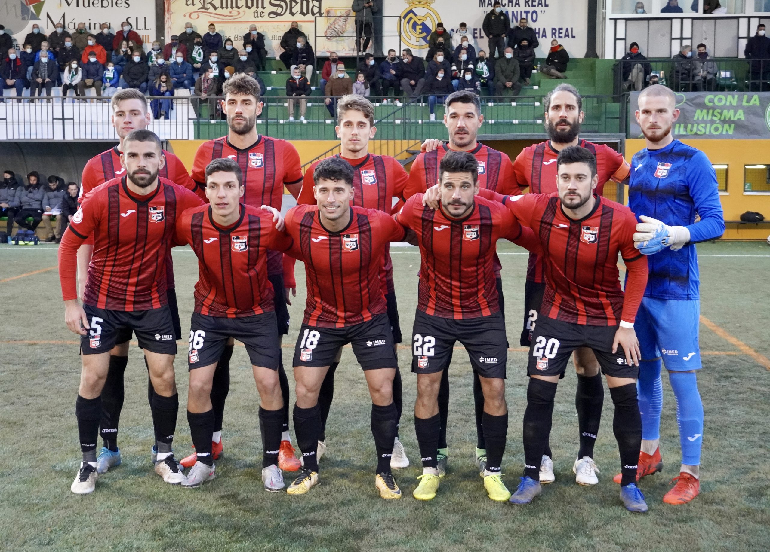 CF La Nucía: Jaume, Romera, Moisés, Salto, Kevin, Dasquet, Adri León (Bora Barry 84’), Javi Cabezas (Fofo 87’), Borja, Manu Viana y Mariano (Marc Mas 87’)