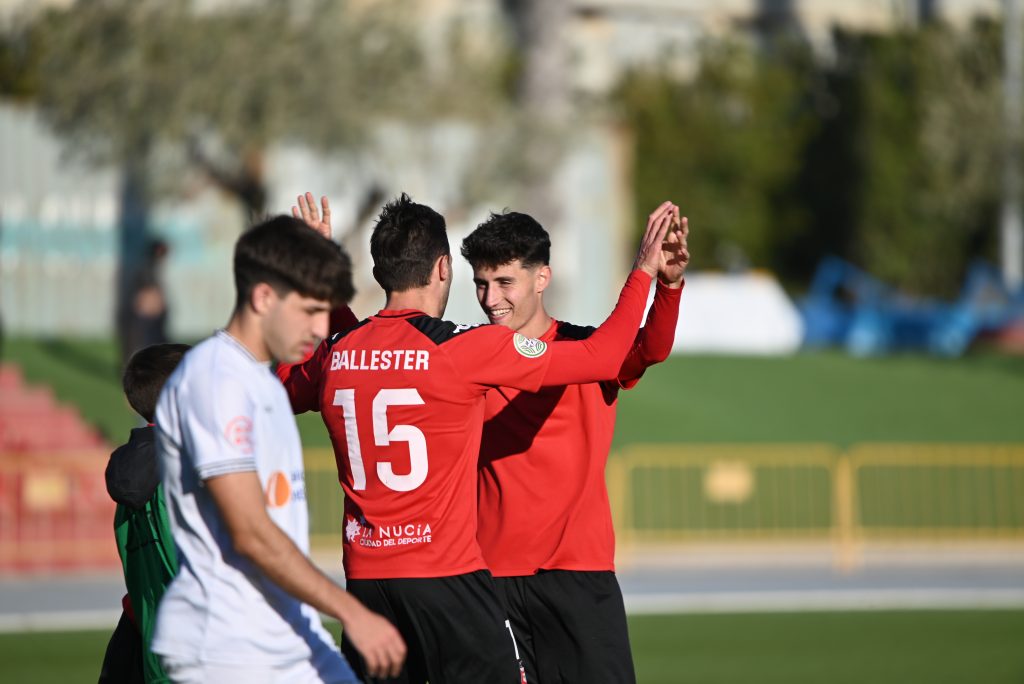 El inicio del partido estuvo marcado por la igualdad. Durante la primera media hora apenas se registraron ocasiones claras, con ambos equipos bien posicionados y sin conceder espacios. No fue hasta el minuto 34 cuando La Nucía logró romper el equilibrio. Víctor Blanco inició la jugada con una buena conducción para superar la presión visitante, el balón le llegó a Mauri y el atacante, tras recortar dentro del área, definió con sangre fría para hacer el 1-0.